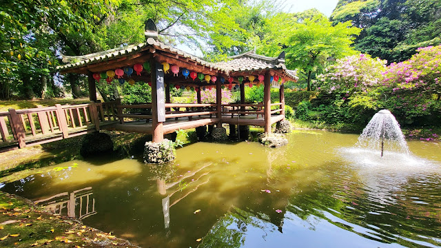 이곳 무량수각 편액을 단 작은 정자가 있는 연못에는 수련이 핀다고 합니다.